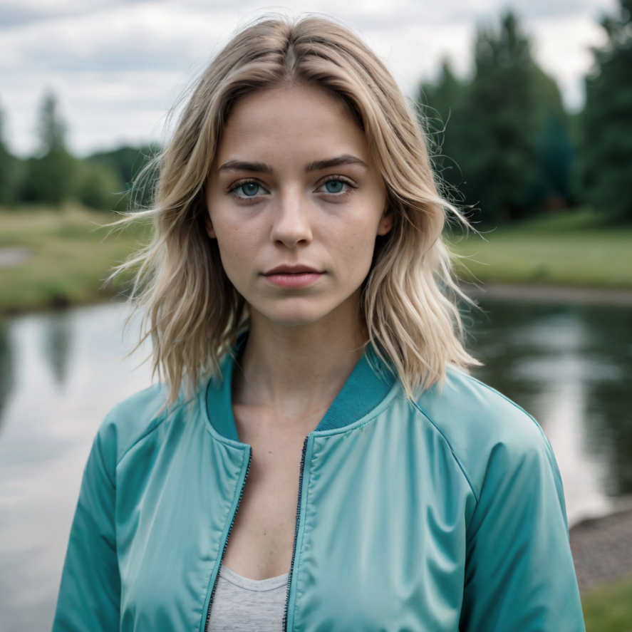 На ней бирюзовая летняя курточка, чёрные джинсы, подчеркивающие несколько излишнюю худобу ног, серые кеды. У неё в руках фиолетовый блокнот с ручкой. Из кармашка джинсов спереди чуть выступает краешек пропуска на работу. Она идёт вроде и спокойно, но в то же время всё-таки спешит.