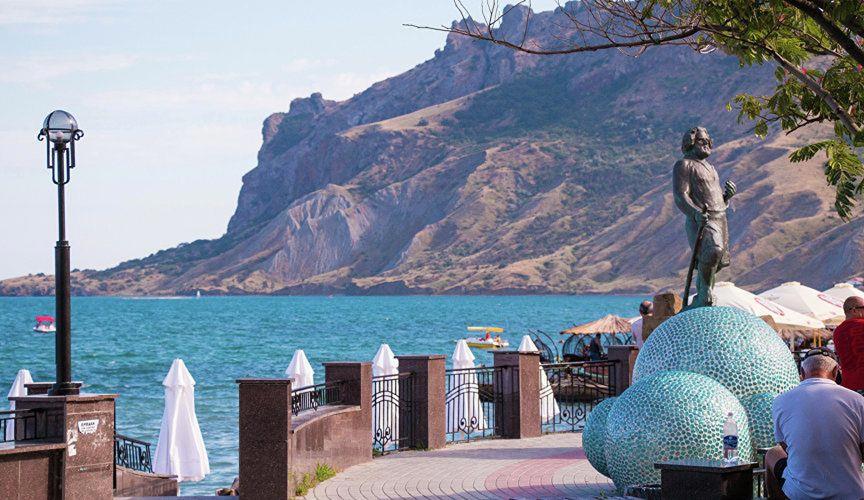 Интересный факт. Одна из достопримечательностей Коктебели – гора Карадаг («Чёрная гора») является самым древним вулканом в Европе, его возраст оценивается в 140 миллионов лет. Он давно потух и ныне опасности не представляет. Карадаг изобилует причудливыми каменными образованиями, ущельями, пиками, бухтами, пещерами, зелёными рощицами. Выступы скал коктебельского Карадага образуют профиль человеческой головы. В нём находили сходство с Александром Пушкиным. Максимилиан Волошин часто говорил, что это его профиль, написав: