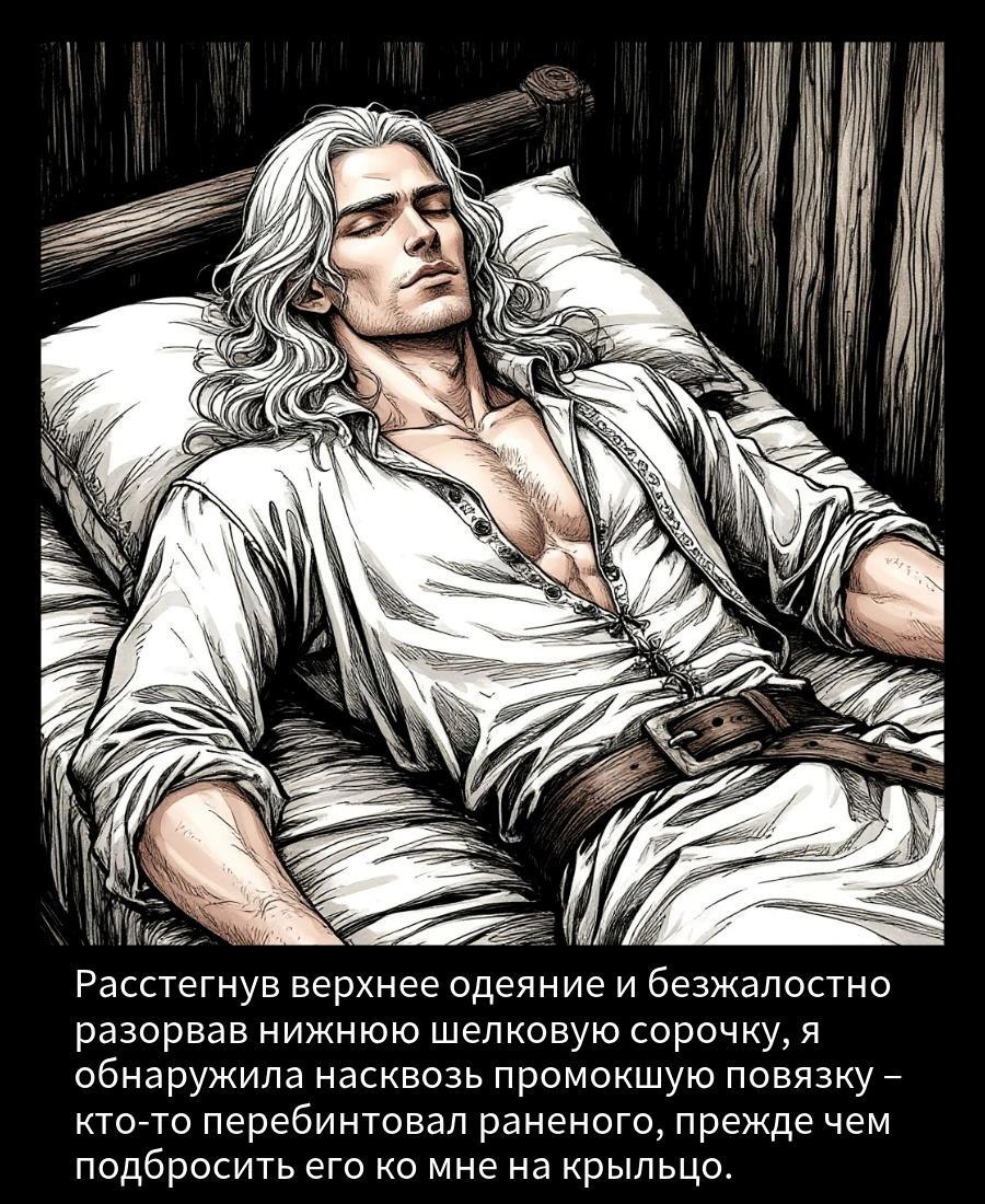 Звук повторился. На этот раз гораздо ниже, словно гость опустился на колени. И тишина… То есть полное безмолвие. Никаких тебе: «Откройте!», «Пустите!», «Спасите!», «Помогите!» и так далее, – только заунывный вой ветра и лёгкое царапанье по дереву сверху вниз. Последнее меня особенно насторожило. Крепче перехватив левой рукой меч, я неуверенно потянулась к покрытому густой бахромой инея металлическому засову. «Может, не надо?!» – вопил внутренний голос, советы которого я с самого детства безрассудно игнорировала. Вот и сейчас резко рванула дверь на себя и почувствовала, как мне на ноги валится что-то большое и тяжёлое вместе с горой скопившегося на крыльце за два дня снега. Испуганно пнув нежданный подарок, я услышала в ответ глухой сдавленный стон. Всё-таки это был кто-то живой и, кажется, разумный.
