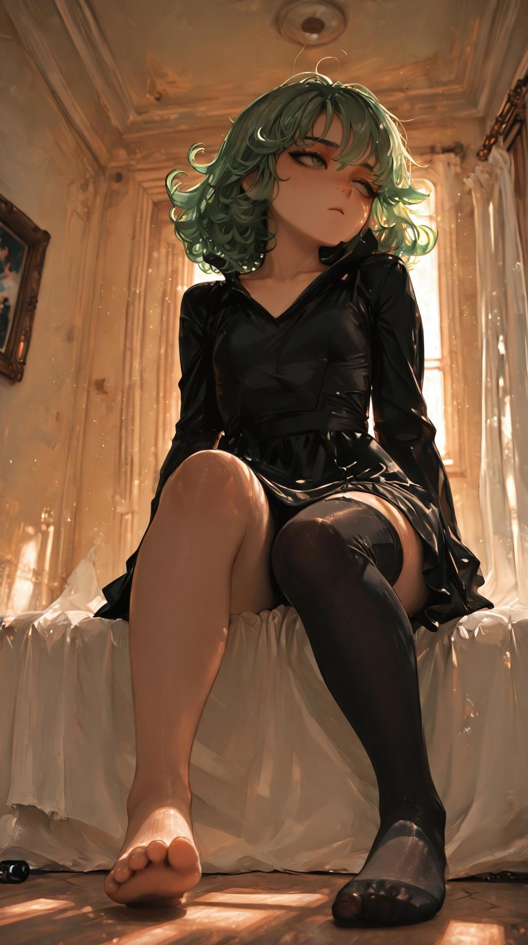 Прямо сейчас она была одета в его рубашку, которая из-за размеров закрывала её руки, и белые чулки, сидя на диване.
