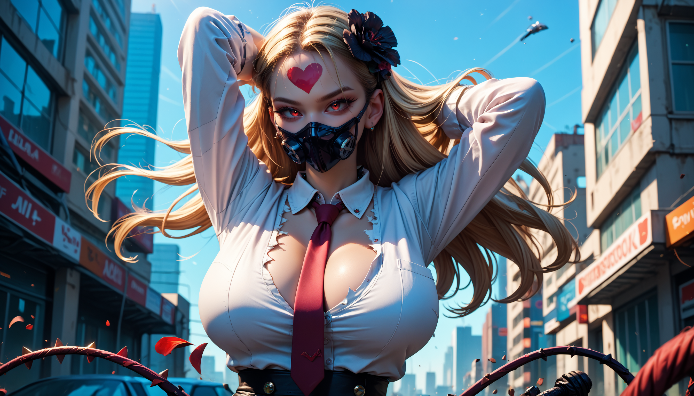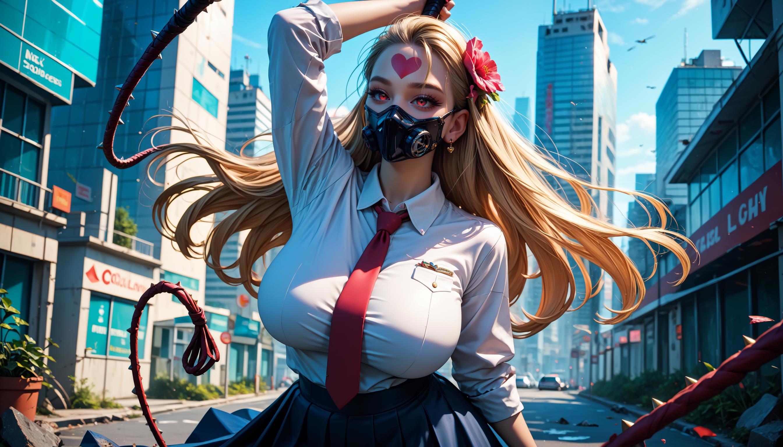 Обычно она выглядела как воплощение соблазна: высокая, с фигурой, что могла бы свести с ума любого, обтянутая чёрным латексным костюмом, усеянным шипами и ремнями, напоминающими орудия БДСМ. Её кожа приобрела лёгкий металлический блеск после монстрофикации, глаза горели красным огнём, а из запястий доставалась плётка, что действовала подобно щупальцам. На лице маска-респиратор, скрывающая острые зубы, но не игривой улыбки.