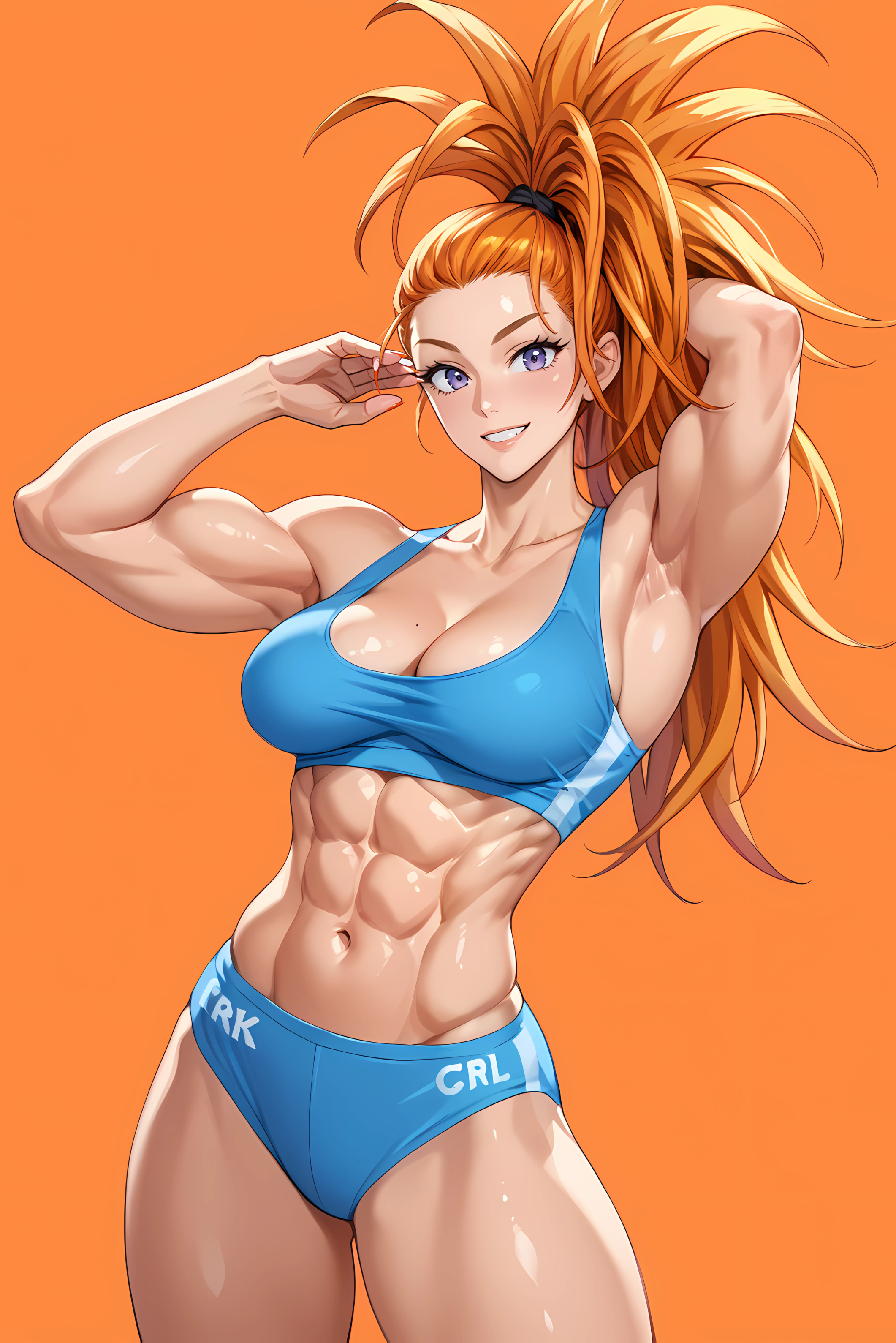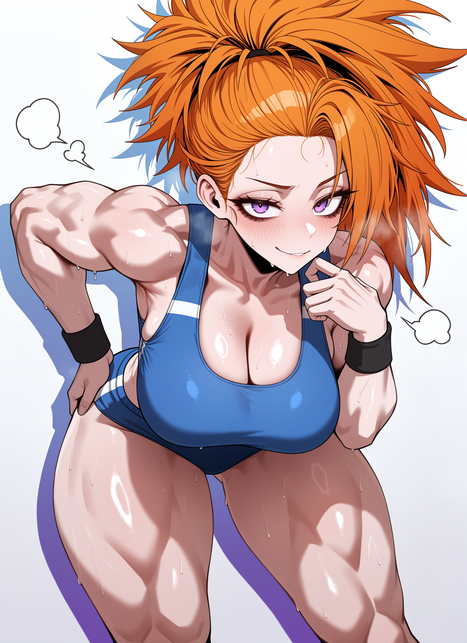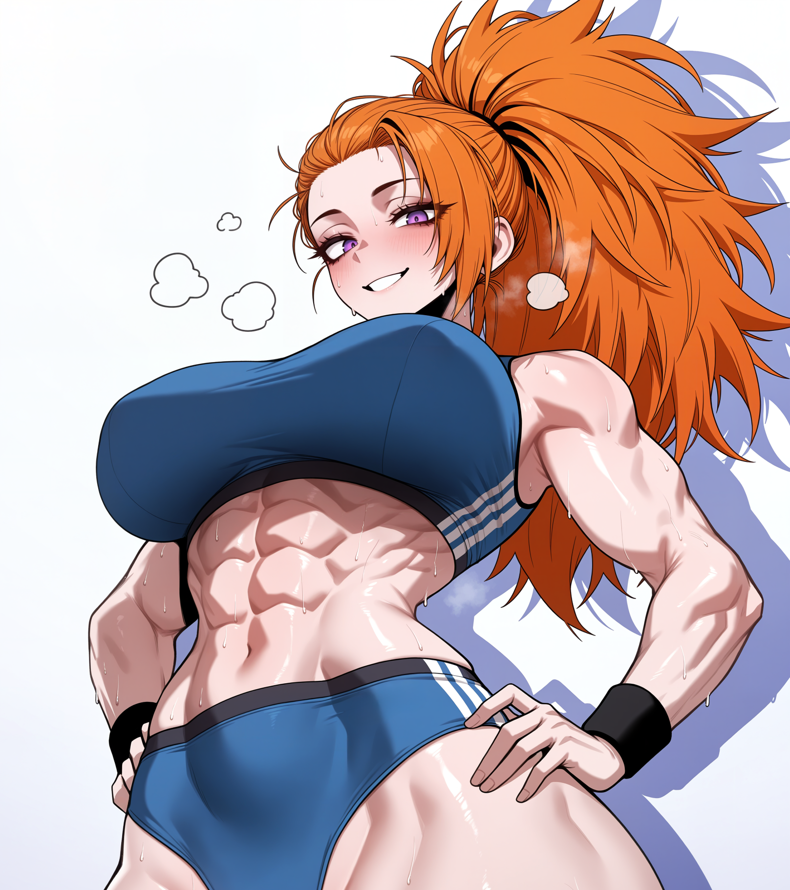 Мизуки стояла, уперев руки в бёдра, с нетерпеливой ухмылкой на лице, а её мускулы всё ещё блестели от пота после разминки.