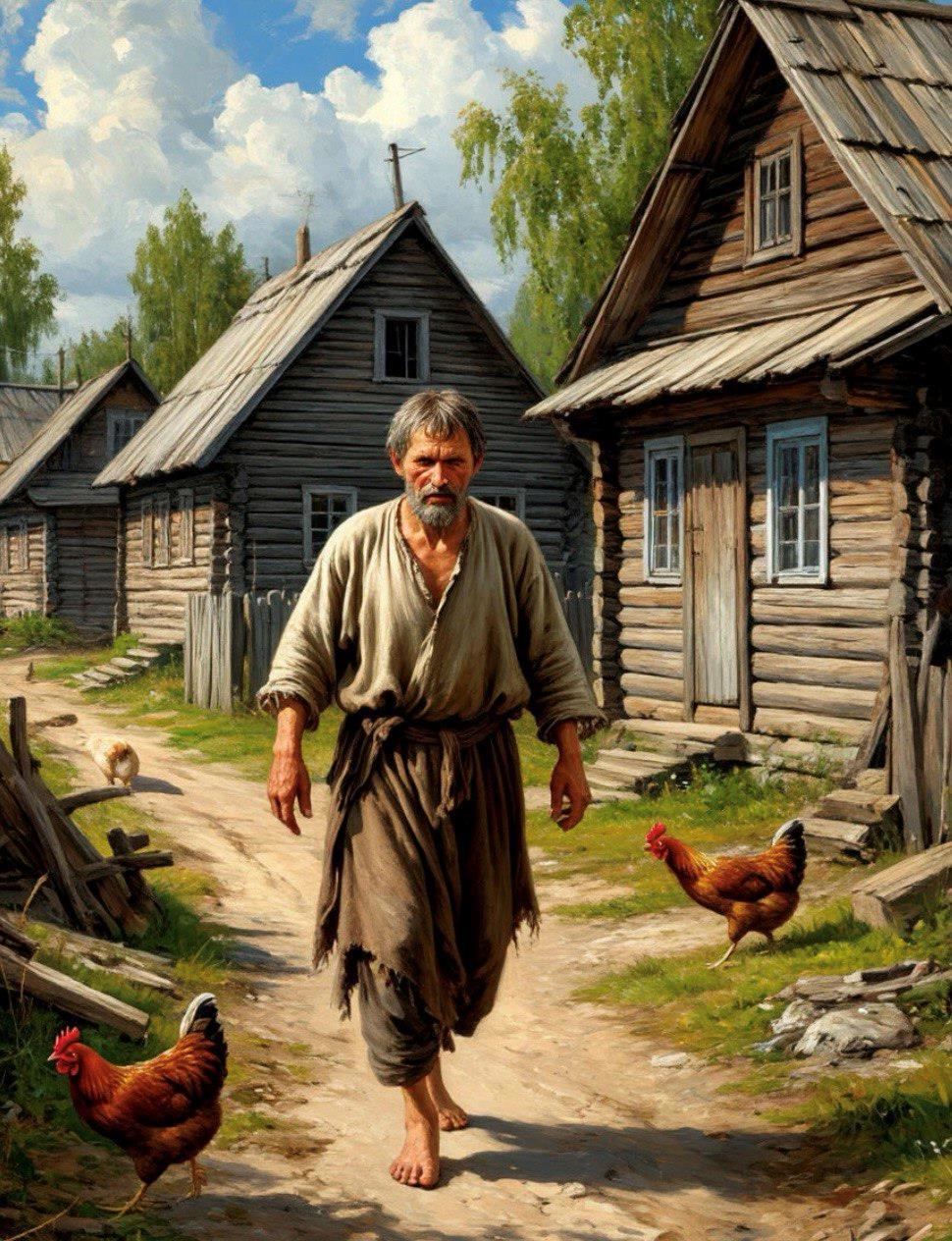 Я вышел из леса и увидел деревушку, точнее, шесть покосившихся лачуг, пшеничное поле поодаль и два более крупных здания из брёвен, нечто вроде сараев. Всё это добро выглядело так, будто его собирались разобрать на дрова ещё в прошлом веке. Особенно «радовала» крыша самого большого строения, она просела, словно спина престарелого мула, перетаскавшего на своём веку не одну тонну тяжестей.