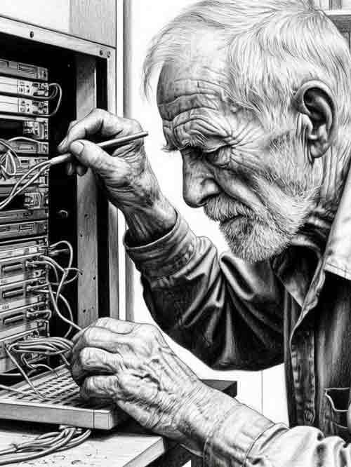 Роман нашел Виктора в серверной – тот наклонился над новым сервером, подключая кабели дрожащими руками. Когда-то крепкие пальцы теперь выглядели как у старика – костлявые, с выступающими венами и старческими пятнами.