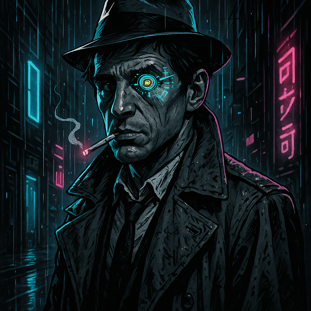 Дождь в Нео-Нова не просто погода, это вечный, кислотный аккомпанемент агонии мегаполиса. Каждый день без устали он барабанил по ржавой крыше моего офиса-конуры на 37-м уровне Лимбо. Стук пробирался под череп, словно настойчивый клиент, не умеющий понимать слово "нет". Вода, смешиваясь с техногенной грязью, оставляла на стекле призрачные, стекающие вниз узоры, сквозь которые мерцали неоновые иероглифы ночного города. «СлавТех — мощь традиций!», «Нейрорай — забудь о реальности!», «Кибер-дзайбацу — ваш билет в Спире!».