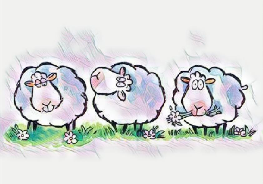 Им повстречались три овечки . У каждой на шее был привязан колокольчик .