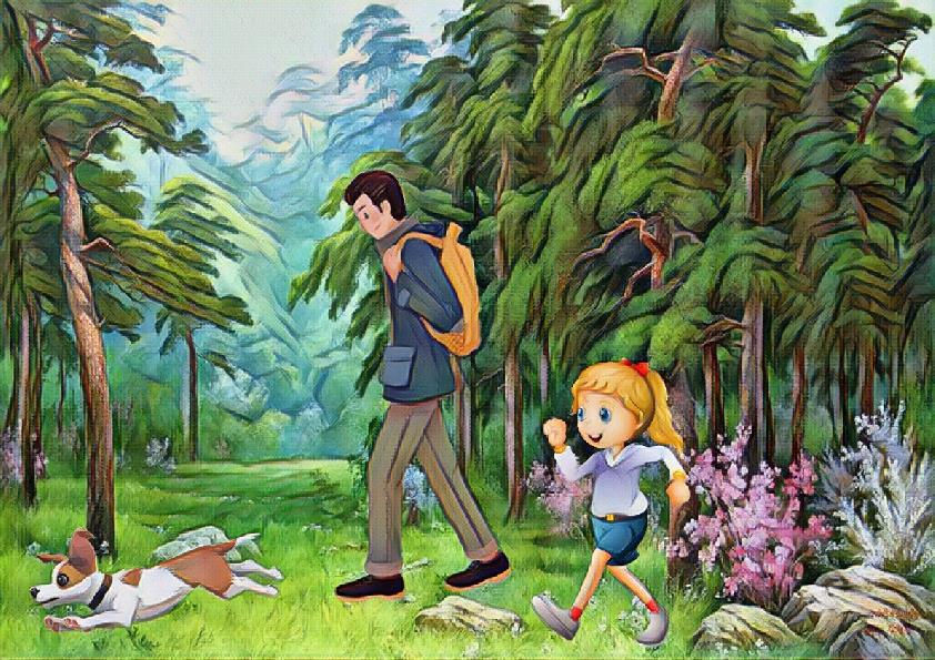 В одной чудесной стране жила-была девочка Ирэнка . Как то раз она со своим папой и пёсиком пошли погулять по лесу . Пёсика звали Пустик и он пел весёлую песенку :