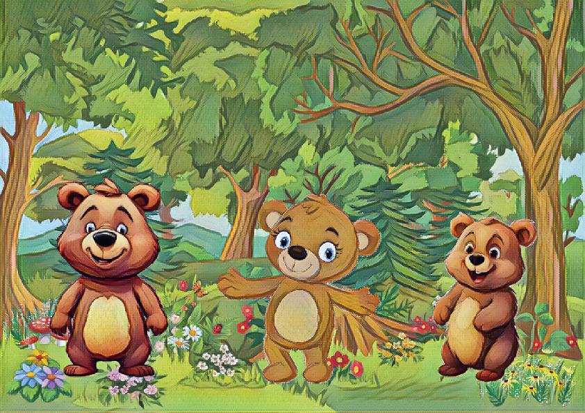 После этого счастливые медвежата с мамой-медведицей отправились к себе домой в лес .