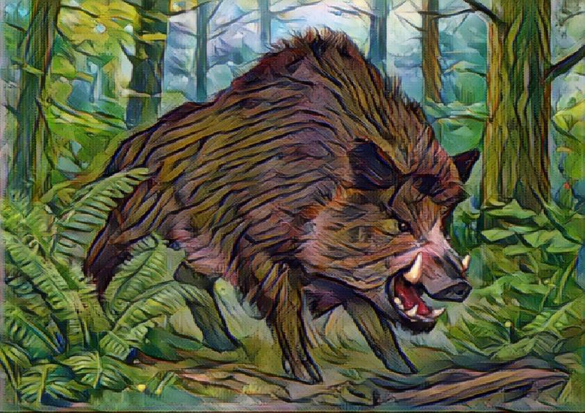 Вдруг на тропинке появился взрослый и большущий Кабан-хулиган . Он тут же зафыркал .