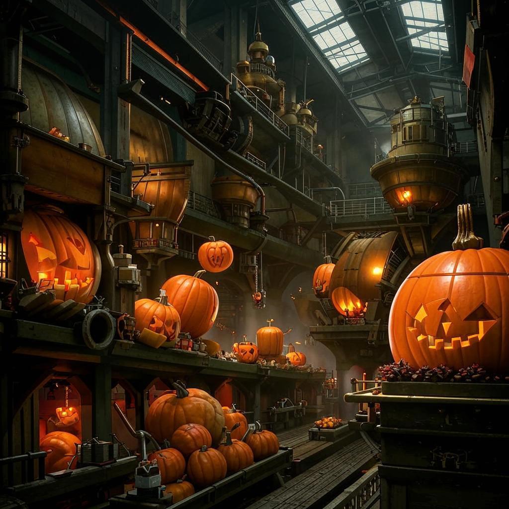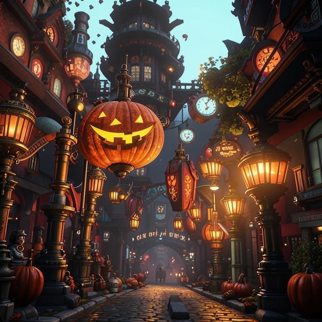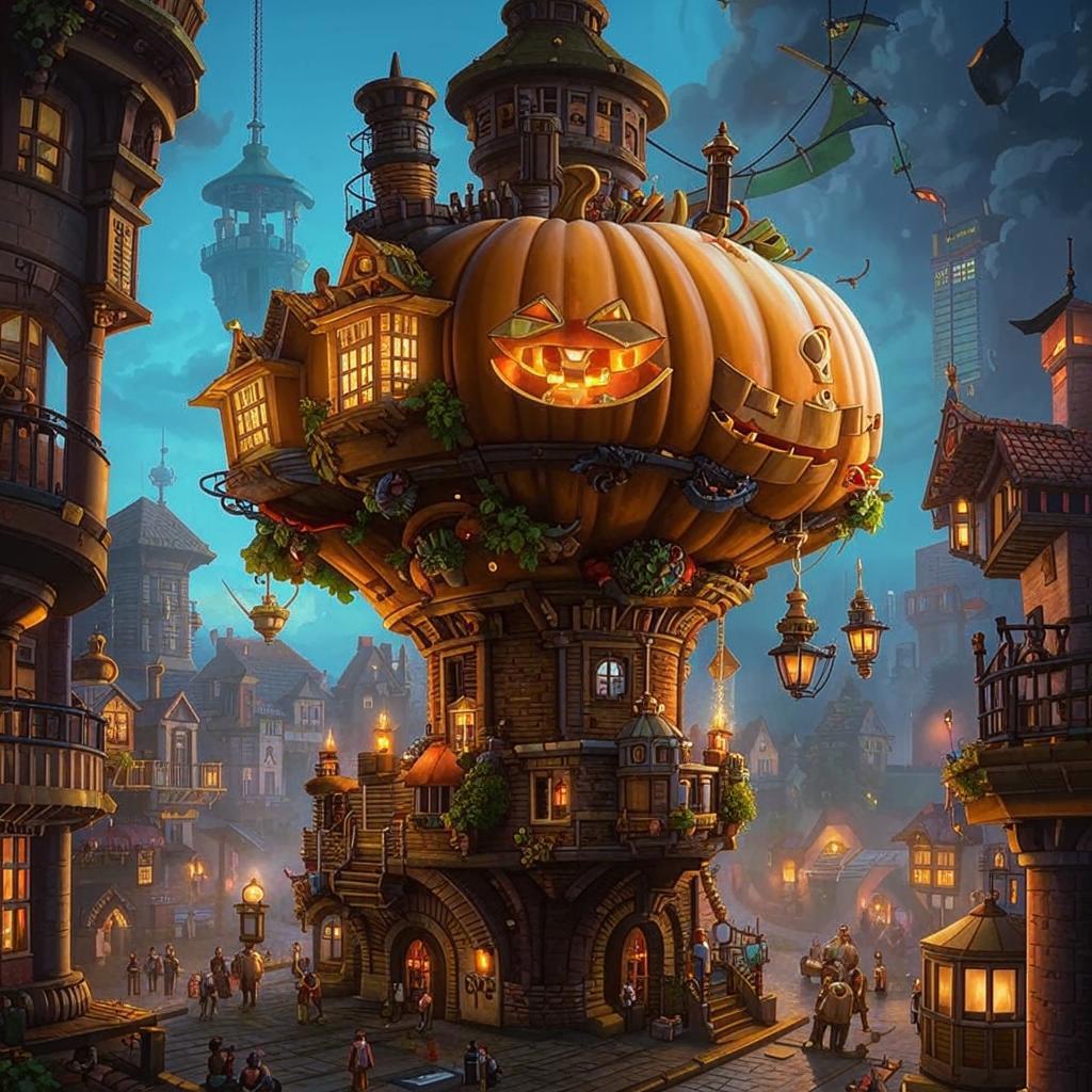 Посреди улицы высилась башня. Выложенная из черного кирпича, она будто вознамерилась проткнуть небо. Но не смогла: помешала гигантская тыква, насаженная на нее, как яблоко на штык. Десятки окон и дымоходов испещрили стены. Окна светились оранжевым в ранних хэллоуинских сумерках. Трубы чадили. Скрежет металла и шум паровых двигателей, приводящих в движение лифты, почти заглушал звуки толпы.