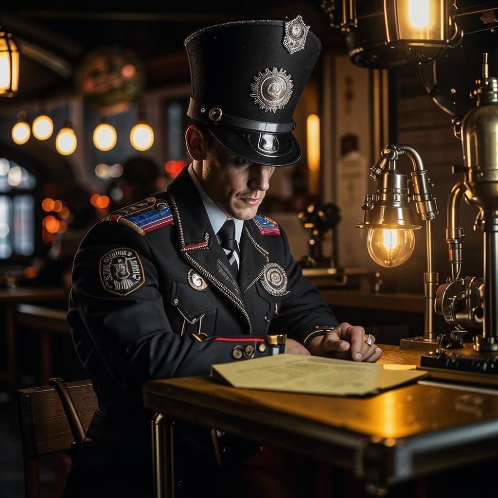 Убранство «Спелой тыквы» вызвало у гостей восторг. Их встретил сверкающий чистотой зал: обитые шелком стены, изысканная мебель и посуда; десятки, а, может быть, сотни электрических ламп, мерцающих в такт музыке. В центре тыквы высилась стойка, облепленная шумными посетителями. За стойкой – металлическая колонна со множеством шарнирных механизмов, напоминающих руки. Гости выбирали блюда из меню и объявляли их, после чего тонкий механический голос из колонны вещал, что заказ принят.