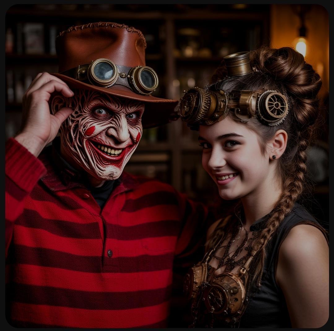 — Шедевр требует драпировки? — Фредди щёлкнул ножницами, и на Маше появилось платье из теней и паутины.
