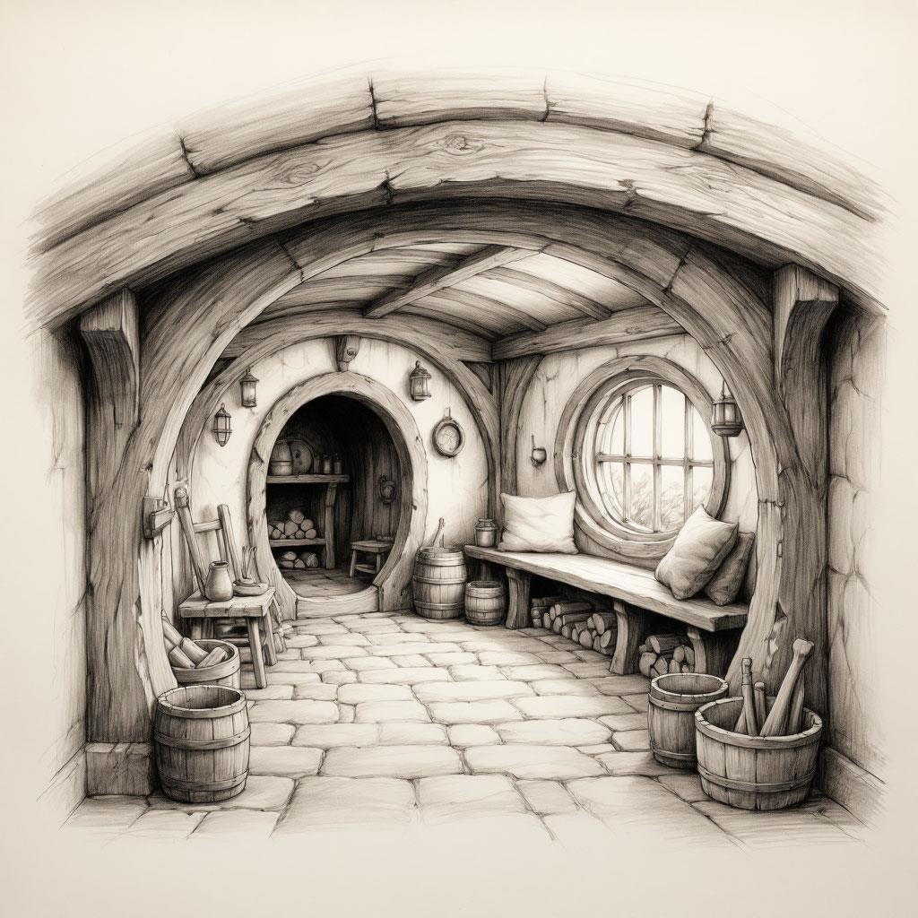 Из-за своей врождённой любви к комфорту Хоббиты ведут оседлый образ жизни, строят для жизни норы или домики на поверхности земли. Внутри дома обустроены по высшему уровню (относительно достатка конкретной семьи): полы выложены плиткой или ценными породами древесины, стены с картинами или полками с красивой посудой, много искусно сделано мебели. Двери и окна круглой формы.